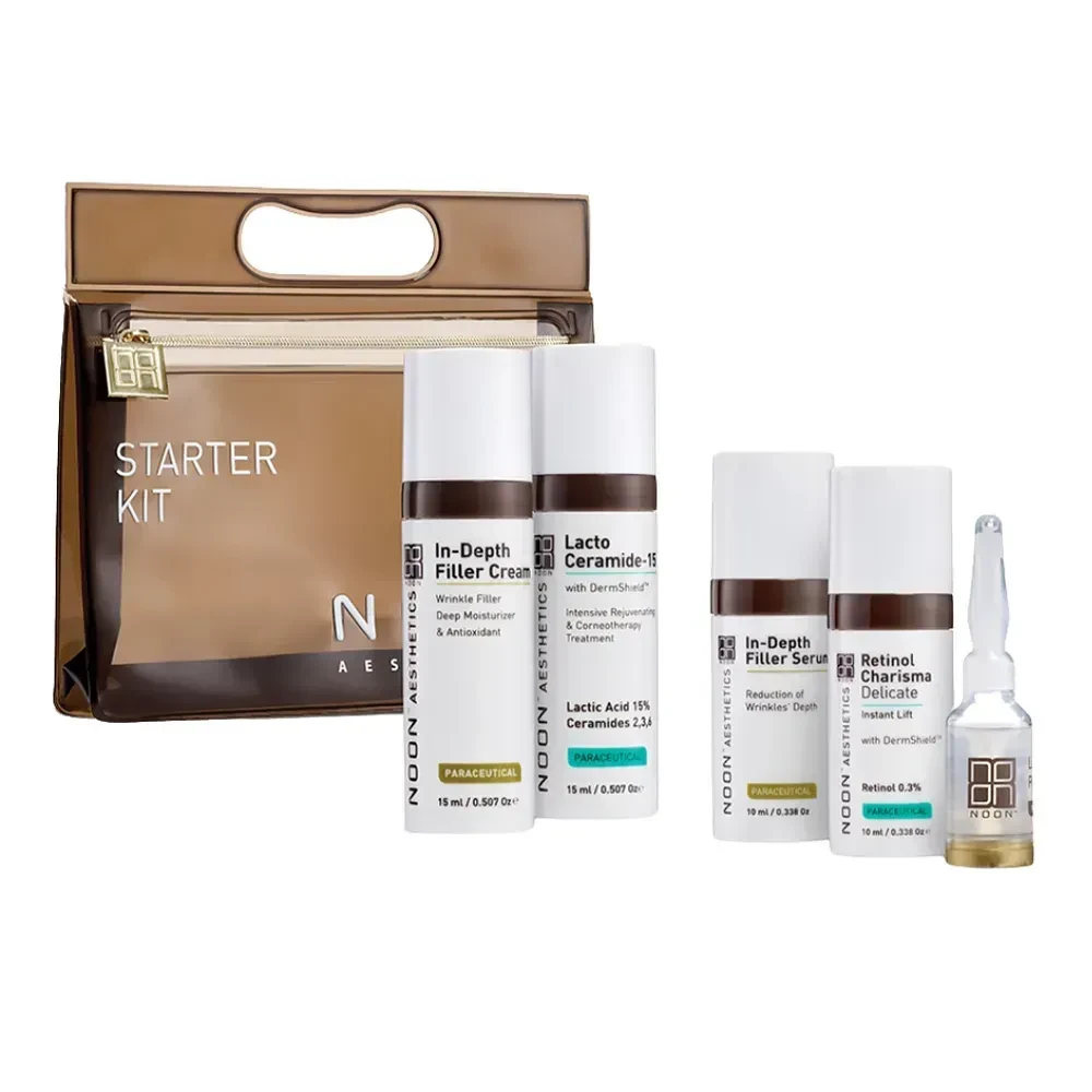 Anti-Aging Starter Kit is a professional set designed to stimulate rejuvenation, firming and even skin tone. The products included in the set combat wrinkles, improve elasticity and hydration of the skin, and prevent the appearance of new signs of aging.
