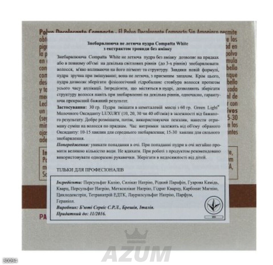 Method of application: the proportion of mixing 1: 2 with Luxury Lactic oxidants of the whole nomenclature. Depending on the Milk Oxidant used, the application time may be: 10-15 minutes for medium bleaching, 15-30 minutes for strong bleaching.