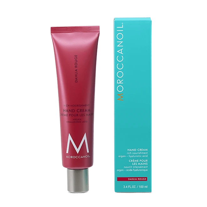 Immerse yourself in a luxurious and sensual atmosphere with Moroccanoil Hand Cream Dahlia Rouge—a moisturizing hand cream enriched with argan oil, shea butter, cocoa butter, and hyaluronic acid. Its silky texture absorbs instantly, deeply nourishing the skin and leaving behind a sophisticated floral-spicy scent.