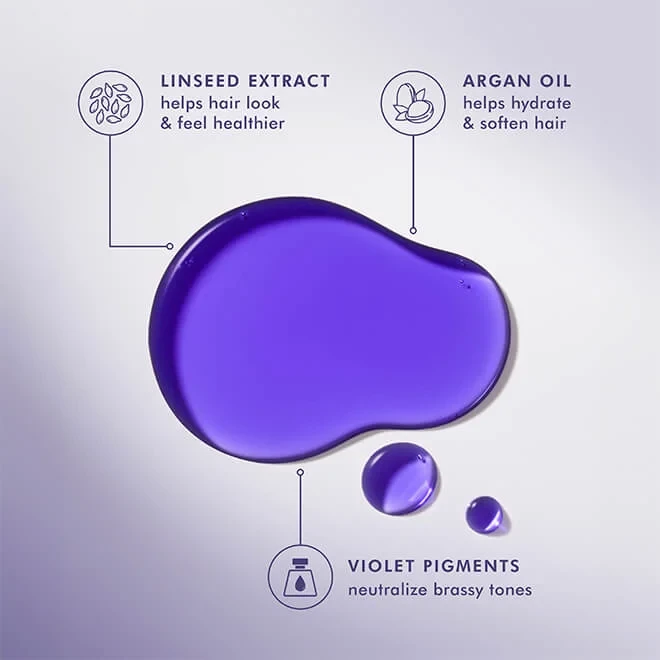 • Neutralizes yellow and brassy tones – violet pigments correct color, giving hair a cool, pure blonde.