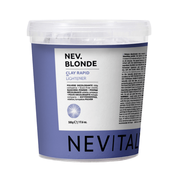 Professional lightening agent in clay format from the Italian brand Nevitaly is created for safe and gentle lightening of natural hair. The innovative formula with the active Blonde Ialo Builder complex based on fermented hyaluronic acid protects the hair structure, preventing overdrying and brittleness.