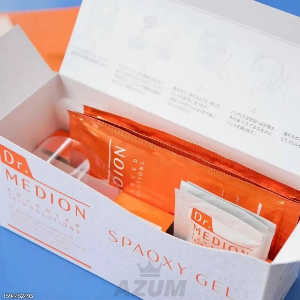 Application: Before use, read the instructions inside the kit. Thoroughly clean the skin of Moisturizing Cleansing Gel Dr.MEDION, apply VC + Dr.MEDION lotion + VC + Dr.MEDION serum, mix the powder and gel according to the instructions and immediately apply the finished gel mask to the entire face, including the areas around the lips and eyes. Leave on for 25-30 minutes. Then remove the gel mask with a spatula, wipe the skin with a damp towel and rinse with water. Complete the procedure by applying the cream VC + Dr. MEDION. For best results, it is recommended to use in combination with VC Dr.MEDION preparations, since the mask enhances the penetration of their active components into the skin.