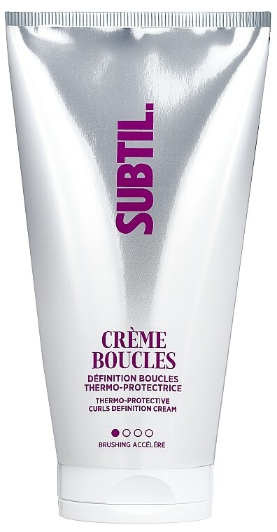 Subtil Boucles Creme is a professional heat-protective cream for creating defined, bouncy, and elastic curls without the stiffness. The formula is specially designed to create waves and curls while maintaining the hair's natural softness and protecting it from high temperatures when using a curling iron, blow-dryer, or styler.